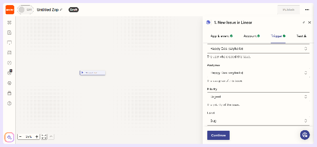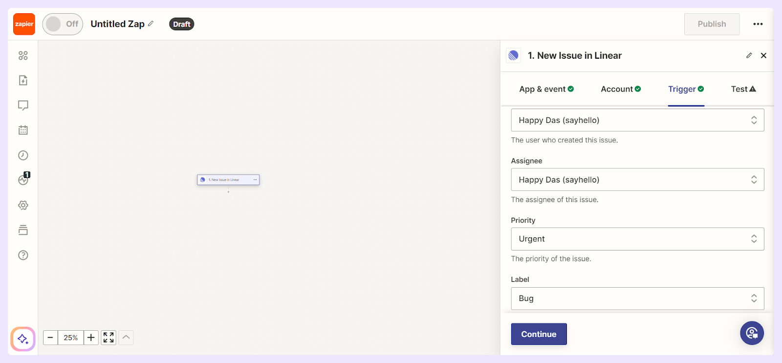 - Connect your Linear account and fill in the required details to configure the trigger for your Linear Zapier integration.