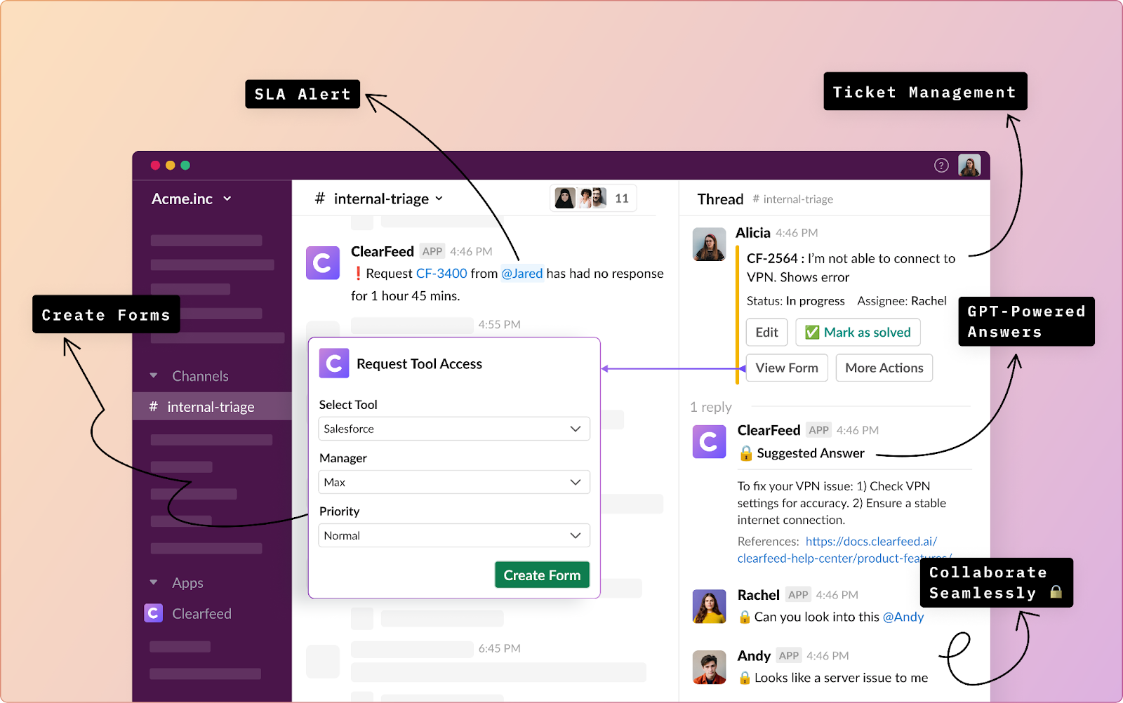 What ClearFeed Does Inside Slack