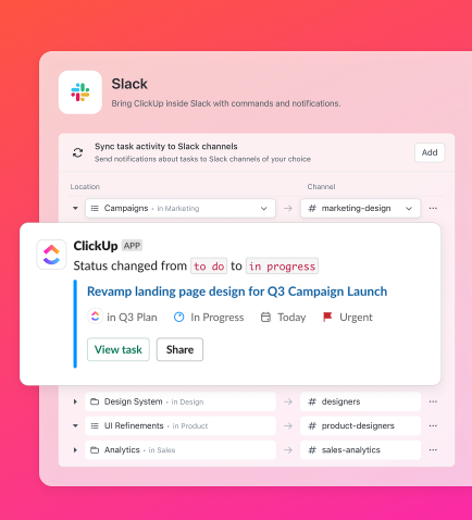 - Get task updates and project notifications in Slack, so work stays visible