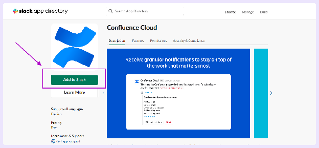 - Visit the Slack App Directory and search for the "Confluence Cloud" app.