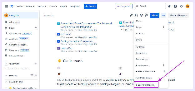 - You can also use the "/confluence" slash command in Slack to manage your settings and subscriptions.