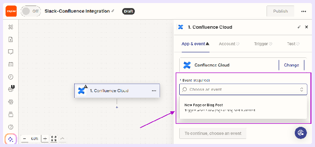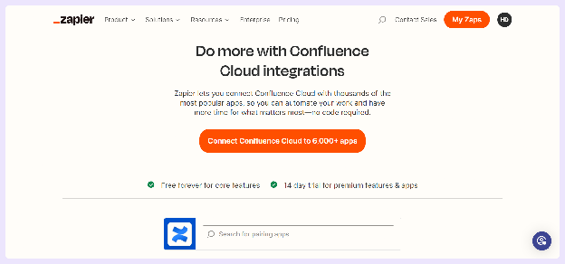 - Search for the “Confluence Cloud” app in the Zapier library.