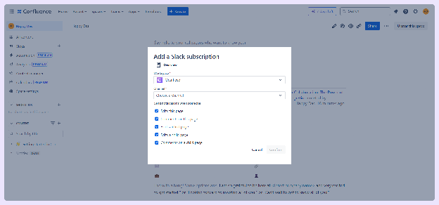 - Set up the notifications in the desired Slack channels by following the prompts provided by the Confluence Cloud app.