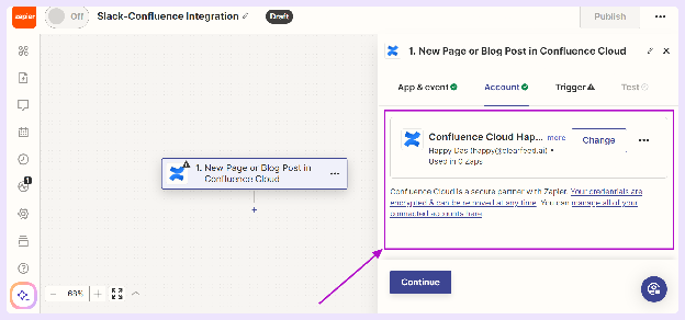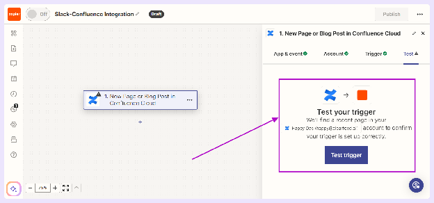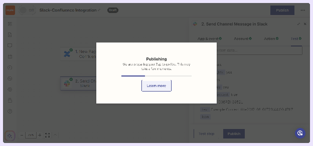 - Zapier will prompt you to test the action by creating a page in Confluence or executing the chosen action.