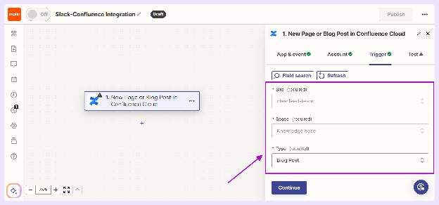 - Confirm the connection and ensure the correct Confluence site is linked.