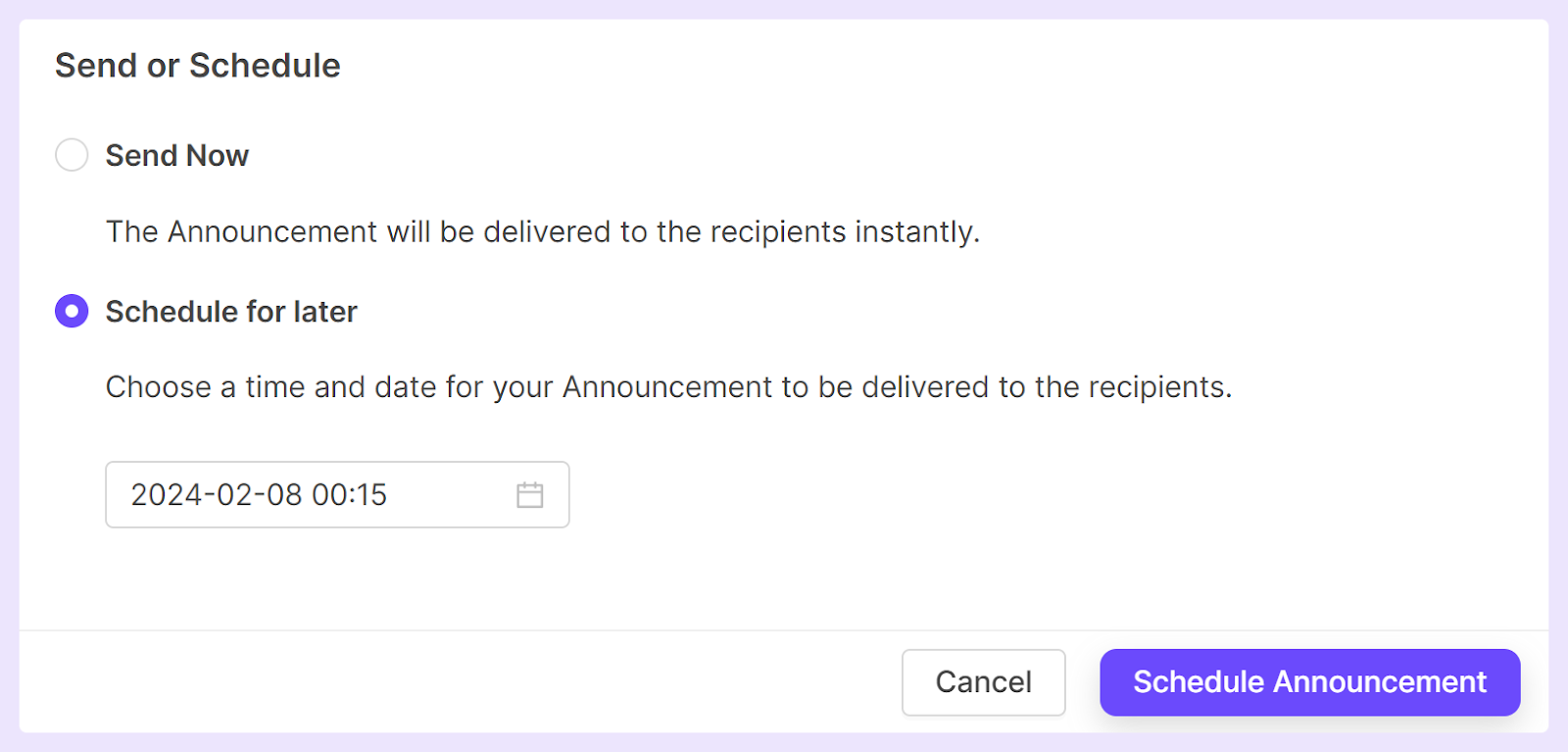 4. Centralized Management Dashboard: The Announcement feature offers an organized viewing platform so you can: