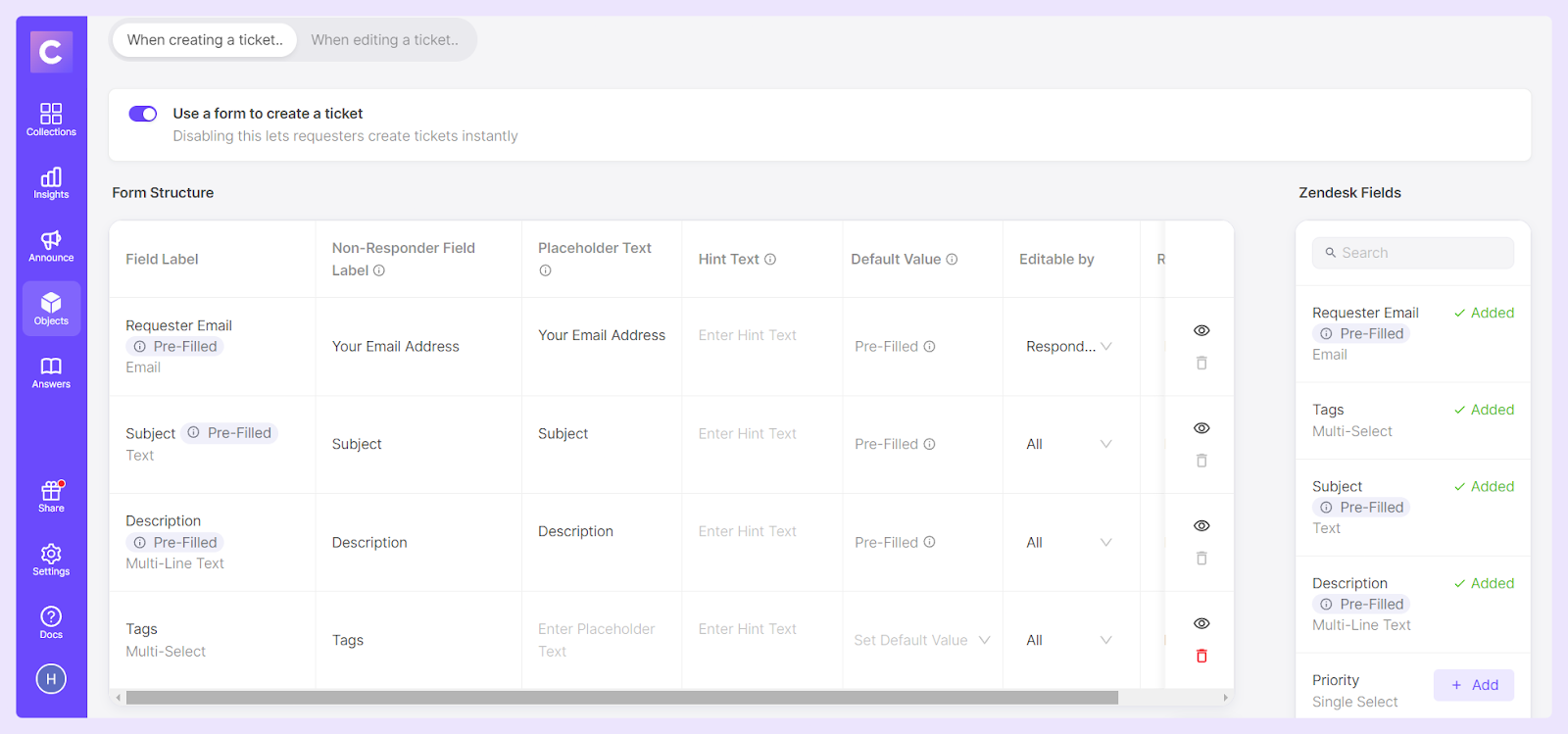 - Go to Objects. Pick Zendesk Ticketing